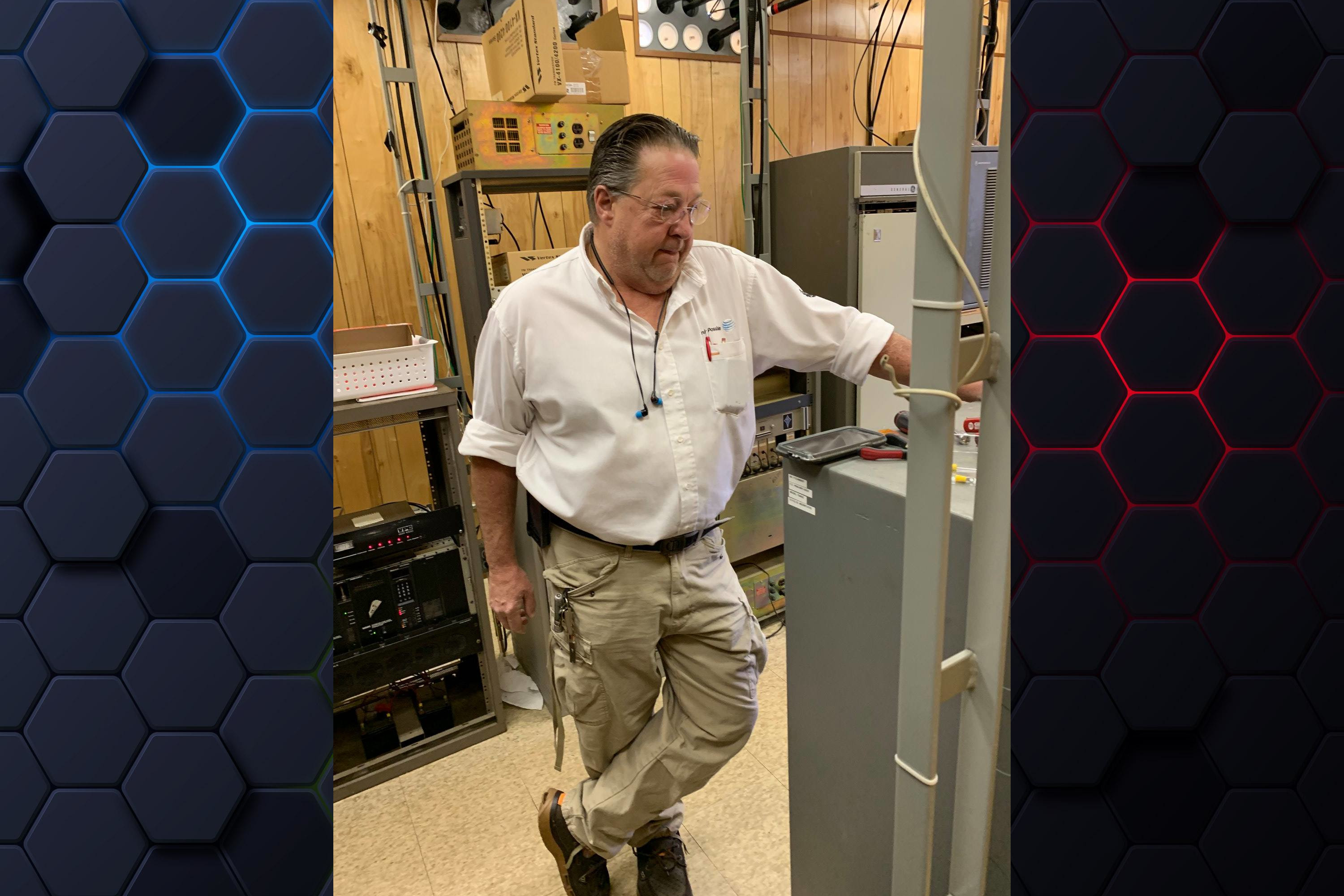 Working on the equipment.